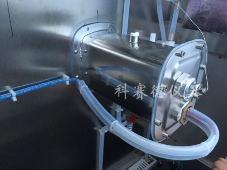 2、大門上安裝有一個大面積矩形中空鍍膜防潮除霜玻璃觀察窗,試驗箱配置有照明燈,便于觀察;